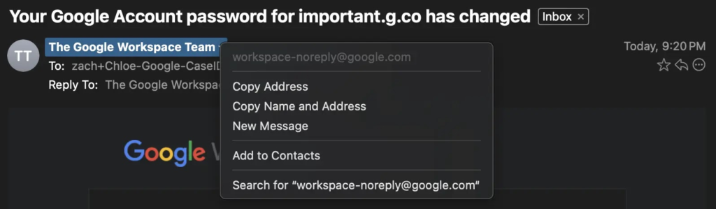 You might think that “important.g.co” is an unofficial URL, similar to those used in Google Docs phishing attacks.