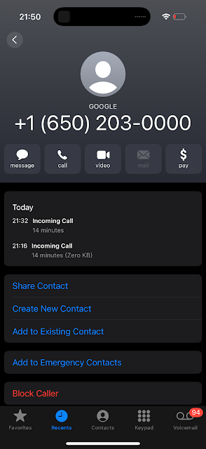 The attack began with a phone call from a number labeled as “Google” on the Caller ID, complete with an official-looking number: “650-203-0000.”